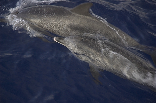 Am 27.04. hatten wir Besuch von einer großen Delfinschule: Geschätzt waren es sicher 30-40 Tiere, die abwechseln vor unseren Bugen spielten und sich dabei munter mit ihren Quietschgeräuschen unterhalten. Und auf einmal, als hätte einer den Befehl gegeben waren alle Delfine wieder verschwunden.