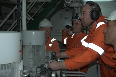 Chef-Schiffsingenieur physisch und durch Erklärungen begleitet.