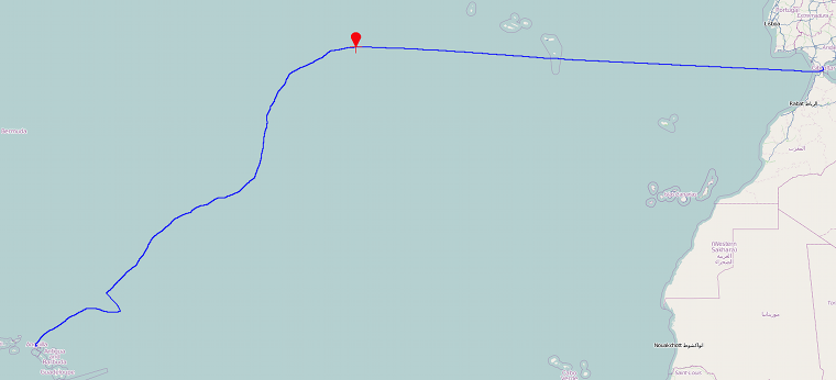In der Abbildung des GPS-Tracks ist die Lage des Kollisions/Sinkortes als rote Wegpunktmarkierung eingetragen.