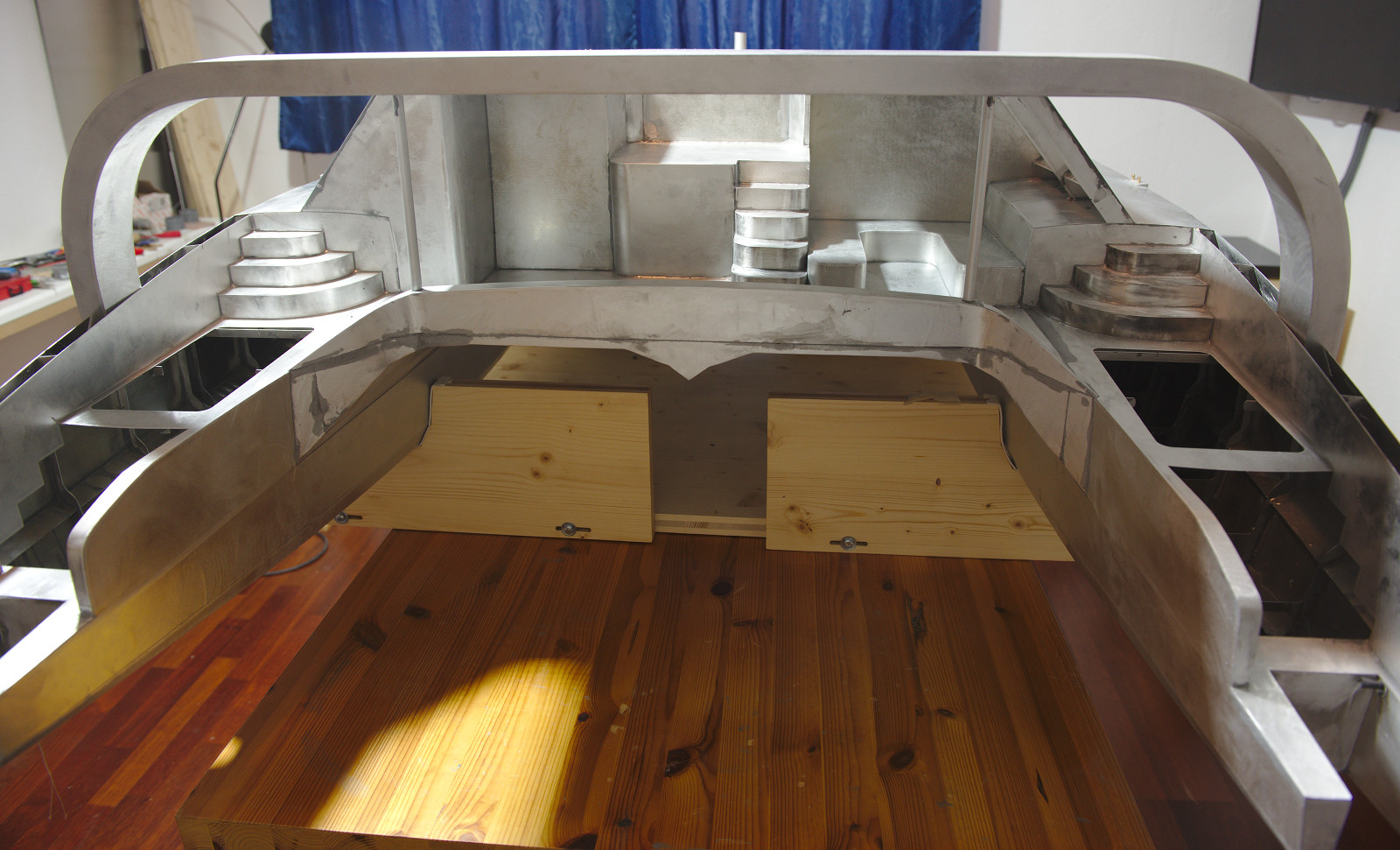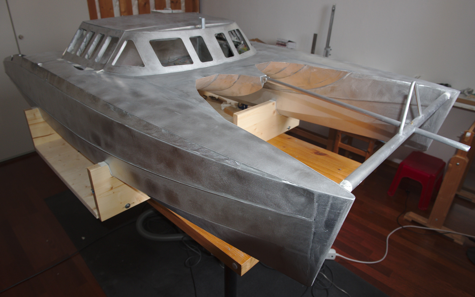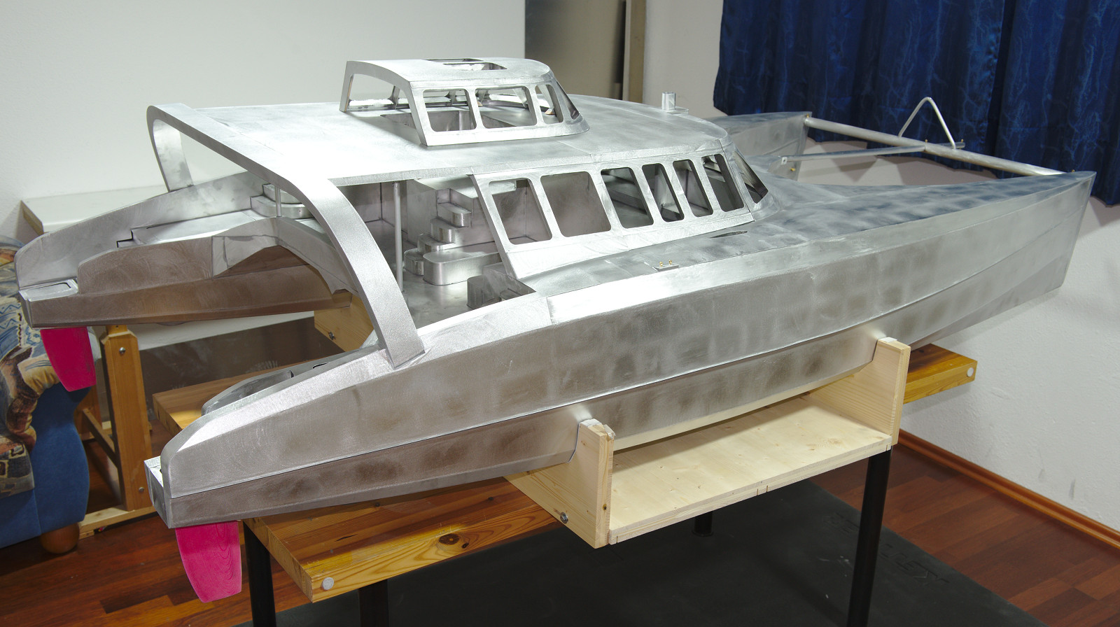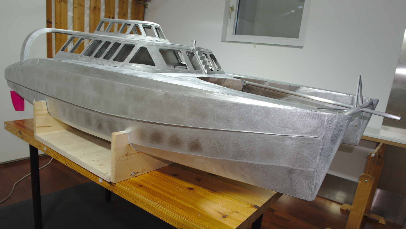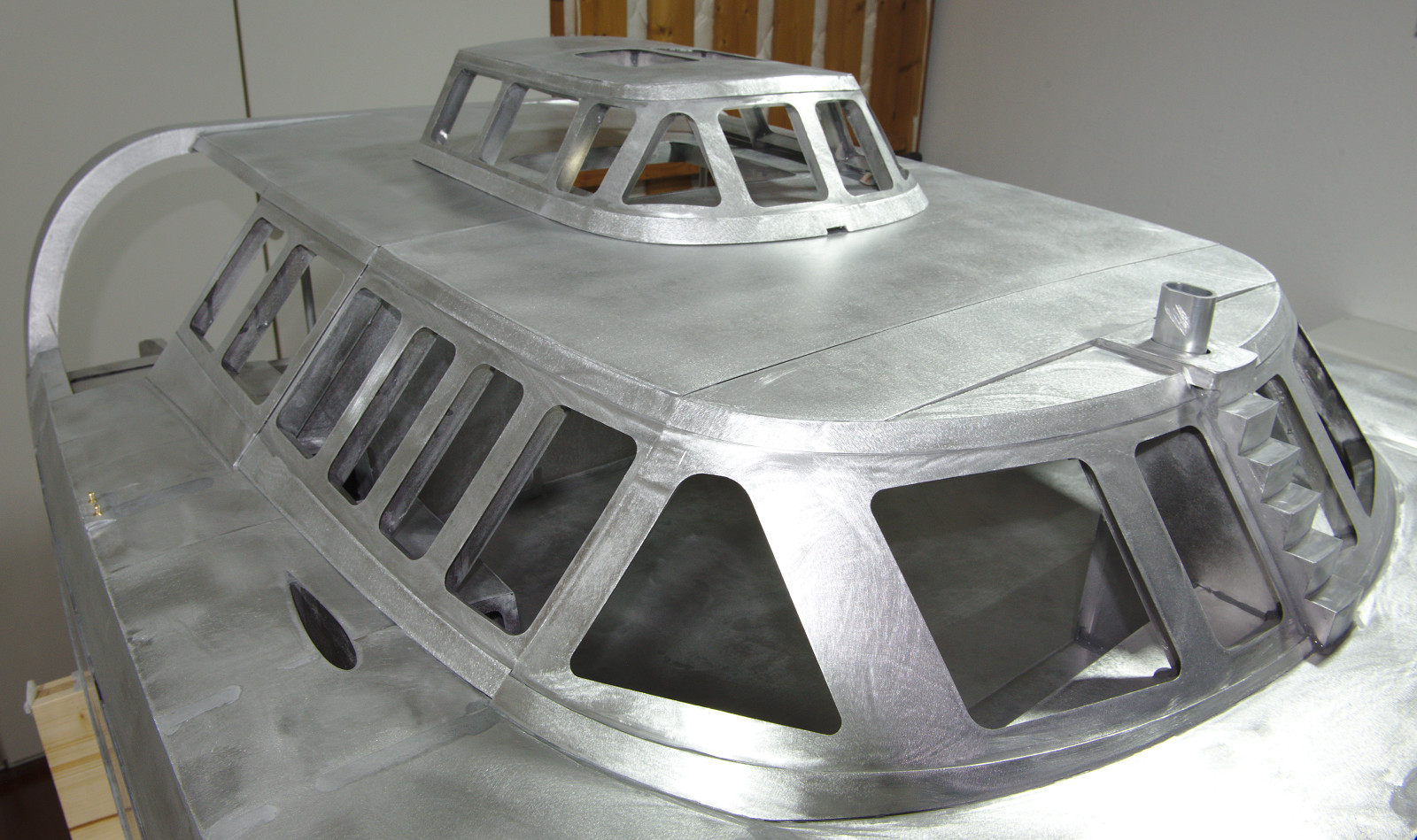 Nun ist es geschafft: Der Rohbau des DreamCatcherOne-Modells ist abgeschlossen. Nach dem letzten Feinschliff glänzt es in seinem Aluminiumgewand. Jetzt ist alles bereit für den Lackierer.